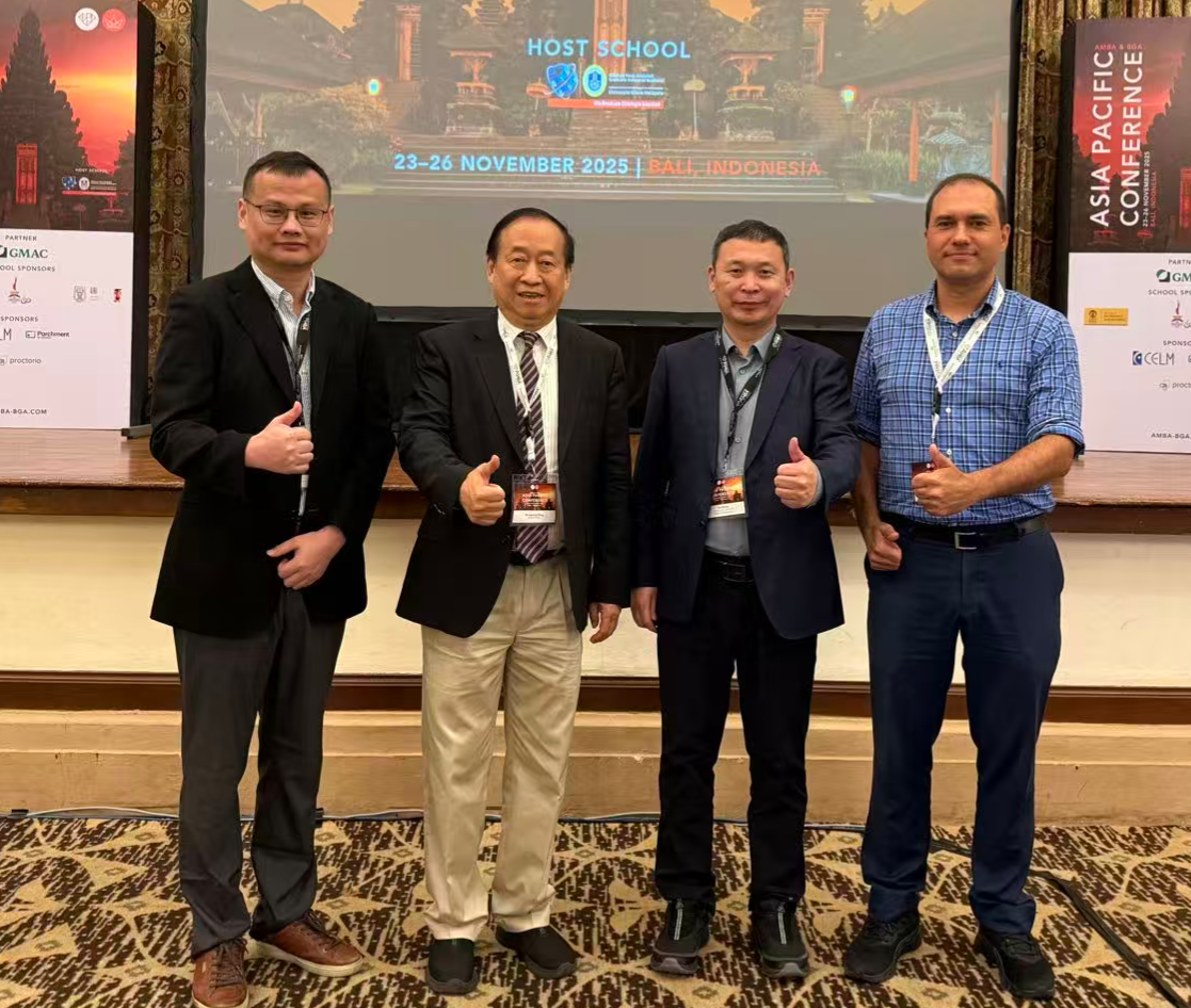 2025年11月23日至26日,AMBA&BGA亚太年会在印度尼西亚举行,来自亚太地区的60多所高校商学院的百余名代表出席了本次会议。会议围绕教学中的AI、案例开发、可续发展管理、AMBA&BGA教育联盟等多个主题,共同探讨商学院教育的未来趋势等前沿议题。副院长张雷带队参会并获颁BGA金牌认证证书。