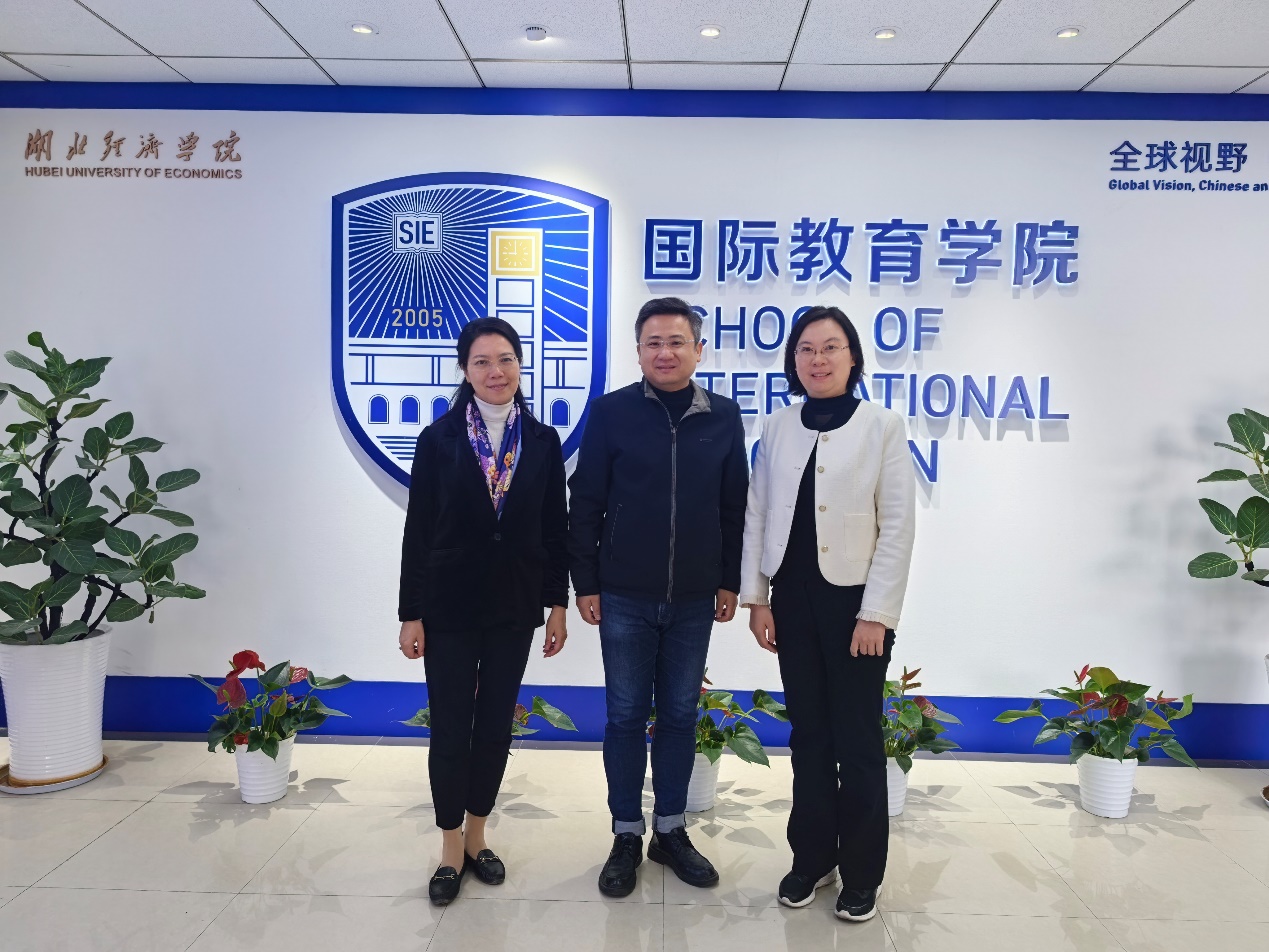 2025年12月1日,浙江财经大学管理学院市场营销(中外合作办学)项目主任陈颖教授,以及王跃梅教授一行赴湖北经济学院国际教育学院,就中外合作办学项目的建设与可持续发展进行专题调研。湖北经济学院国际教育学院副院长靳洪(主持工作)、中美合作项目秘书陈扶摇等热情接待并开展深入交流。