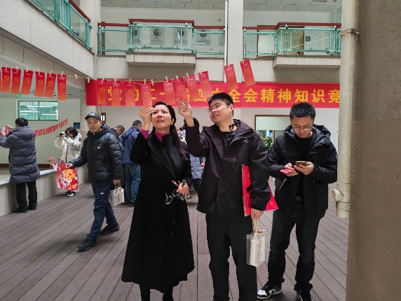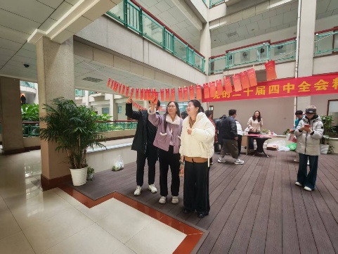寒冬时节,暖意融融。2025年12月30日,管理学院一楼大厅一改往日的静谧,化身热闹有序的知识“赛场”与新年“市集”。一场主题鲜明、形式新颖的“学习二十届四中全会精神”知识竞答活动在此火热开展,管理学院全体教师以饱满热情、扎实理论功底投身其中,在知识碰撞与欢乐互动中,为岁末校园增添了浓厚的红色底蕴与祥和年味。