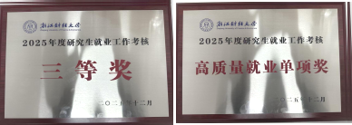 管理学院荣获浙江财经大学2025年度研究生就业工作考核三等奖及高质量就业单项奖,这是学校对我院研究生就业工作的充分肯定,也体现了学院长期以来坚持把就业工作融入研究生培养全过程的工作成效。