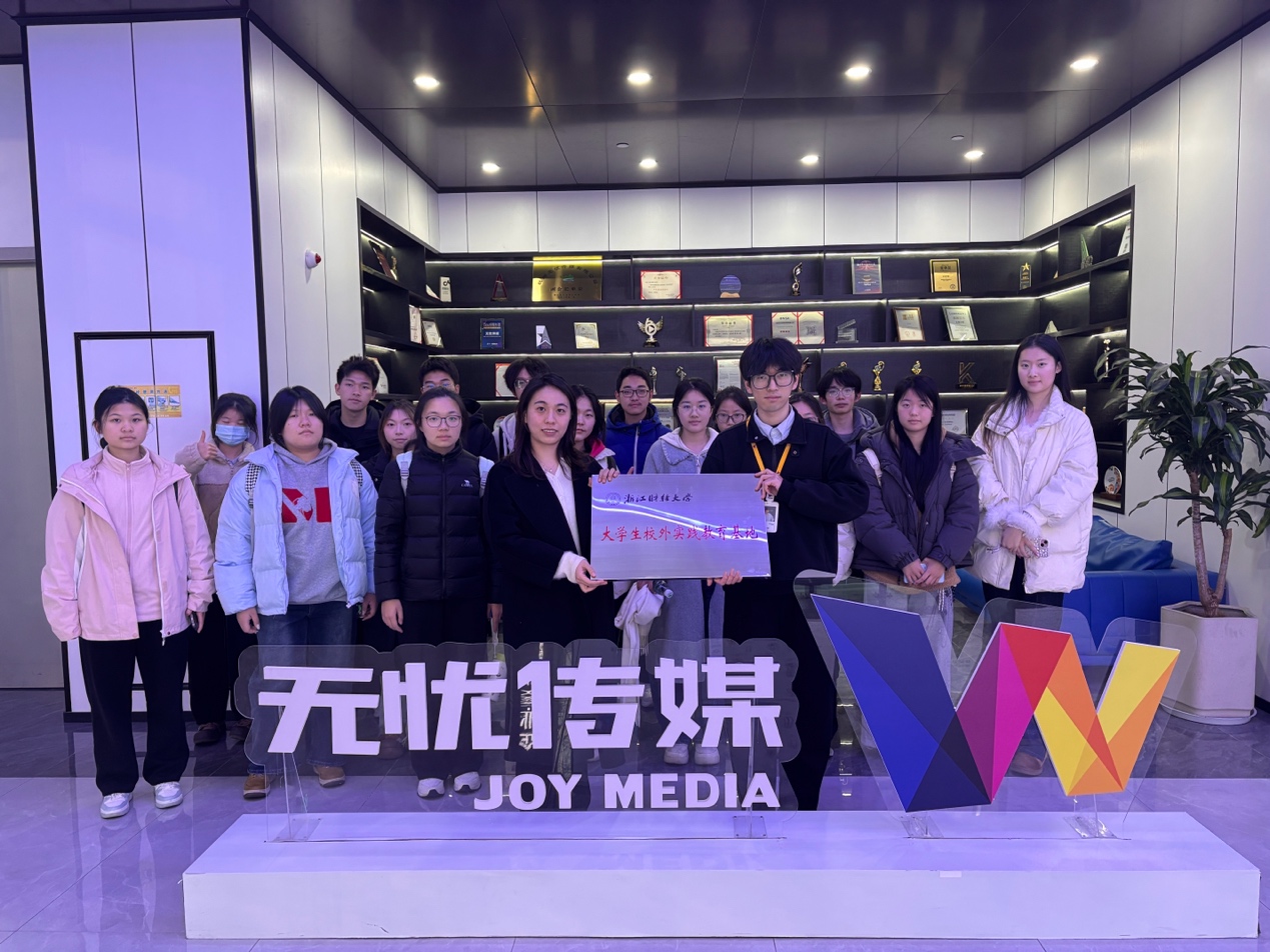 1月9日下午,浙江财经大学管理学院组织师生代表赴杭州无忧传媒开展参访交流活动,并举行了“浙江财经大学无忧传媒校企实践教育基地”授牌仪式。此次活动聚焦新媒体行业前沿动态与企业实践经验,以“走进头部传媒,链接产学融合”为主题,旨在通过实地观摩、基地共建与深度交流,进一步搭建校企协同育人桥梁,为学生未来职业发展与专业学习注入强劲的实践动能。