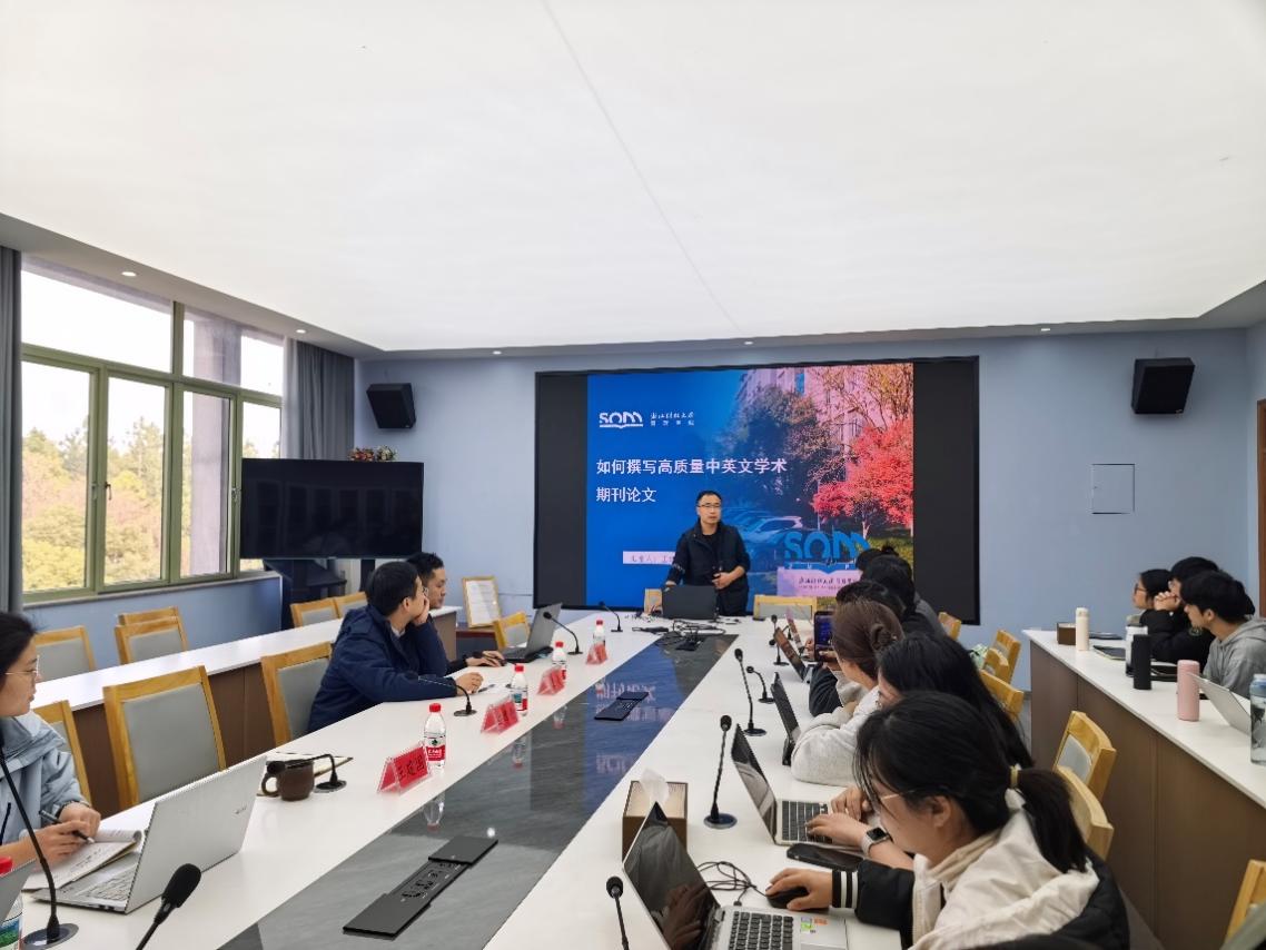 为助力研究生科研能力的提升,管理学院于2025年12月11日举办青年教师科研经验分享会。本次分享会特邀学院优秀青年教师王建国与孙琪担任主讲嘉宾,他们立足自身科研实践,系统分享了从课题申请到论文发表的经验,为在场研究生带来了一场内容扎实、启发深远的学术交流。