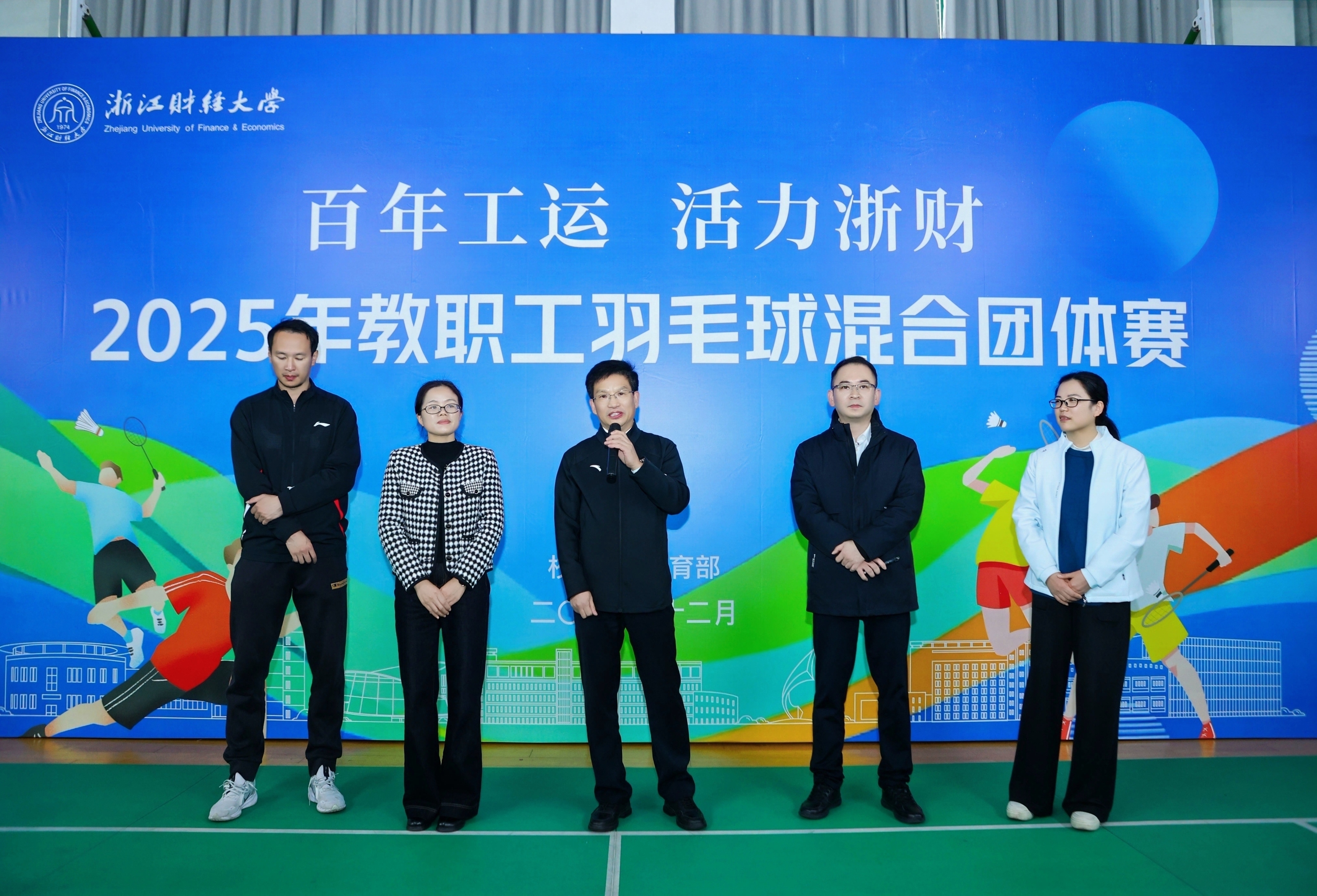 12月2日和4日,“百年工运 活力浙财”2025年教职工羽毛球混合团体赛在下沙校区举行。校党委委员、副校长董进才出席开幕式并宣布比赛开赛。经过两个下午43场比赛的激烈角逐,管理学院分工会蝉联2025年冠军。