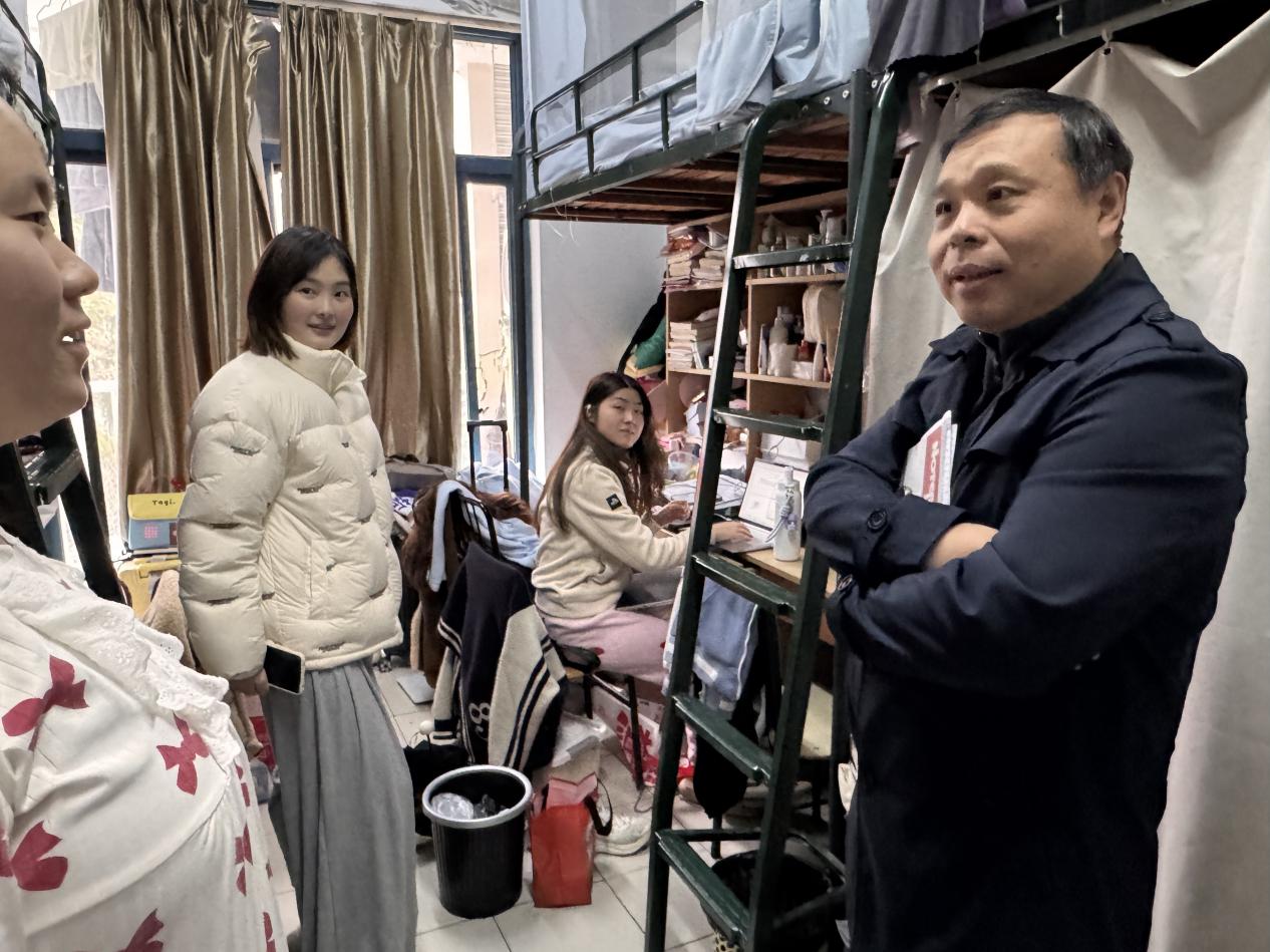 会后,学院迅速落实会议部署,学院领导、全体辅导员分组深入学生寝室开展实地走访。走访过程中,老师们与学生面对面亲切交流,细致询问同学们返校后的适应情况、新学期学习规划与生活需求,耐心倾听同学们的意见建议,重点关注特殊学生群体的心理状态与生活困难,现场解答学生疑问、疏导负面情绪,将关怀与叮嘱送到学生身边,既排查了安全隐患,也拉近了师生距离,让学子们切实感受到学院的温暖与守护。