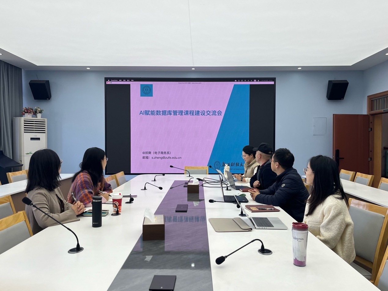 为进一步服务数字经济发展和“数字中国”战略,探索“新商科+新工科”交叉人才培养路径,11月19日,浙江财经大学电子商务系举行“AI赋能数据库管理”课程建设交流会。电子商务系教师郑爽围绕《AI赋能数据库管理》课程建设情况作专题汇报与交流。