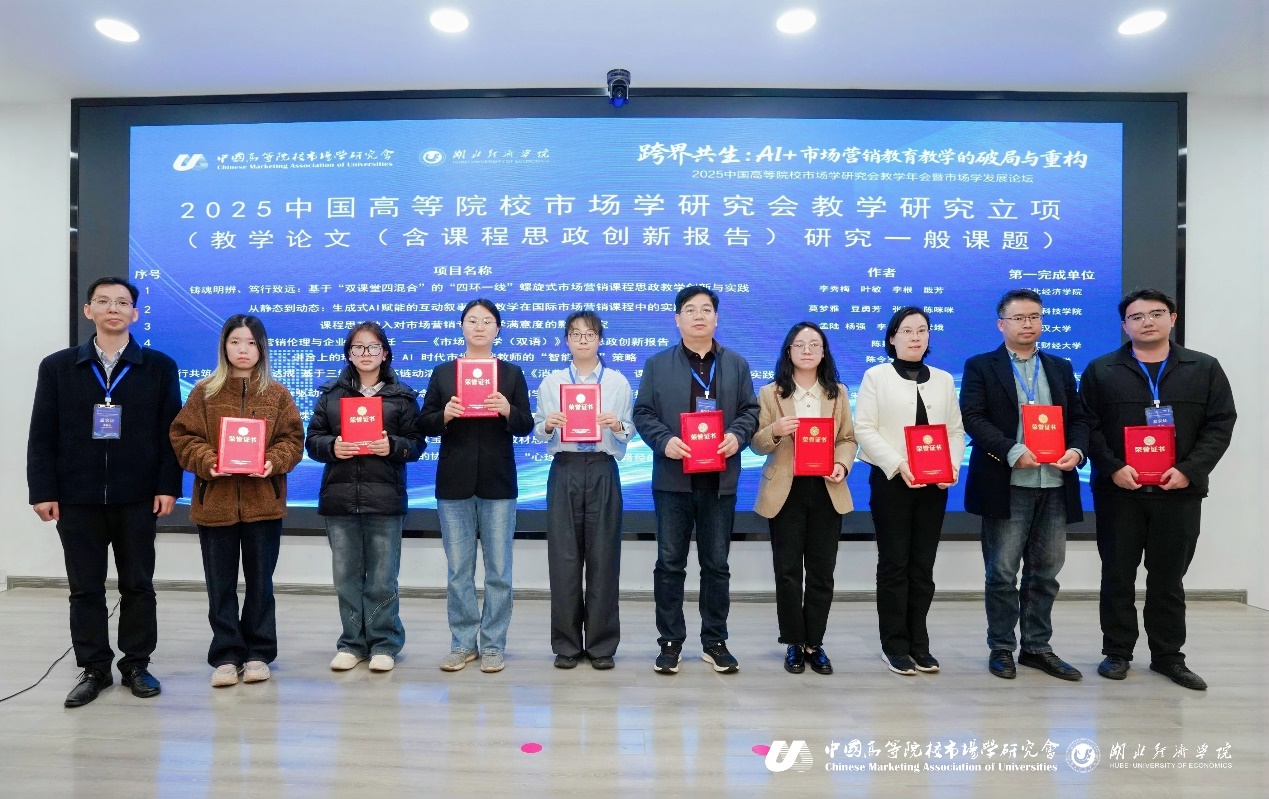 11月28日至30日,中国高等院校市场学研究会2025教学年会暨市场学发展论坛在湖北经济学院举办。来自全国160多所高校和科研单位的近300名市场营销专业负责人、骨干教师及行业专家齐聚一堂,围绕“跨界共生:AI+市场营销教育教学的破局与重构”主题,共同探讨人工智能时代市场营销教育教学改革与学科发展的新路径,分享教学经验,推动全国市场营销专业建设与人才培养质量持续提升。我院市场营销专业陈颖和王跃梅老师参加会议。