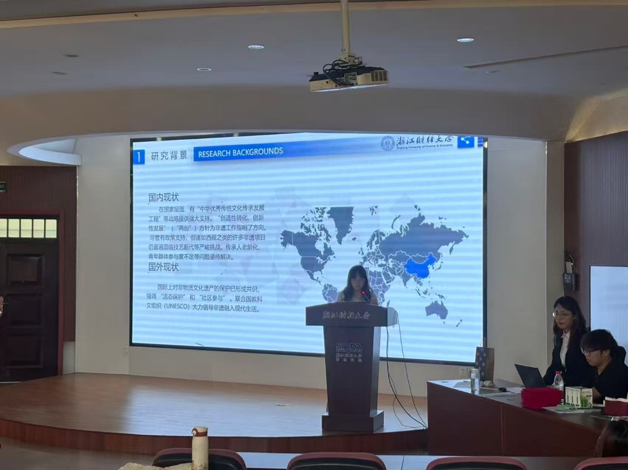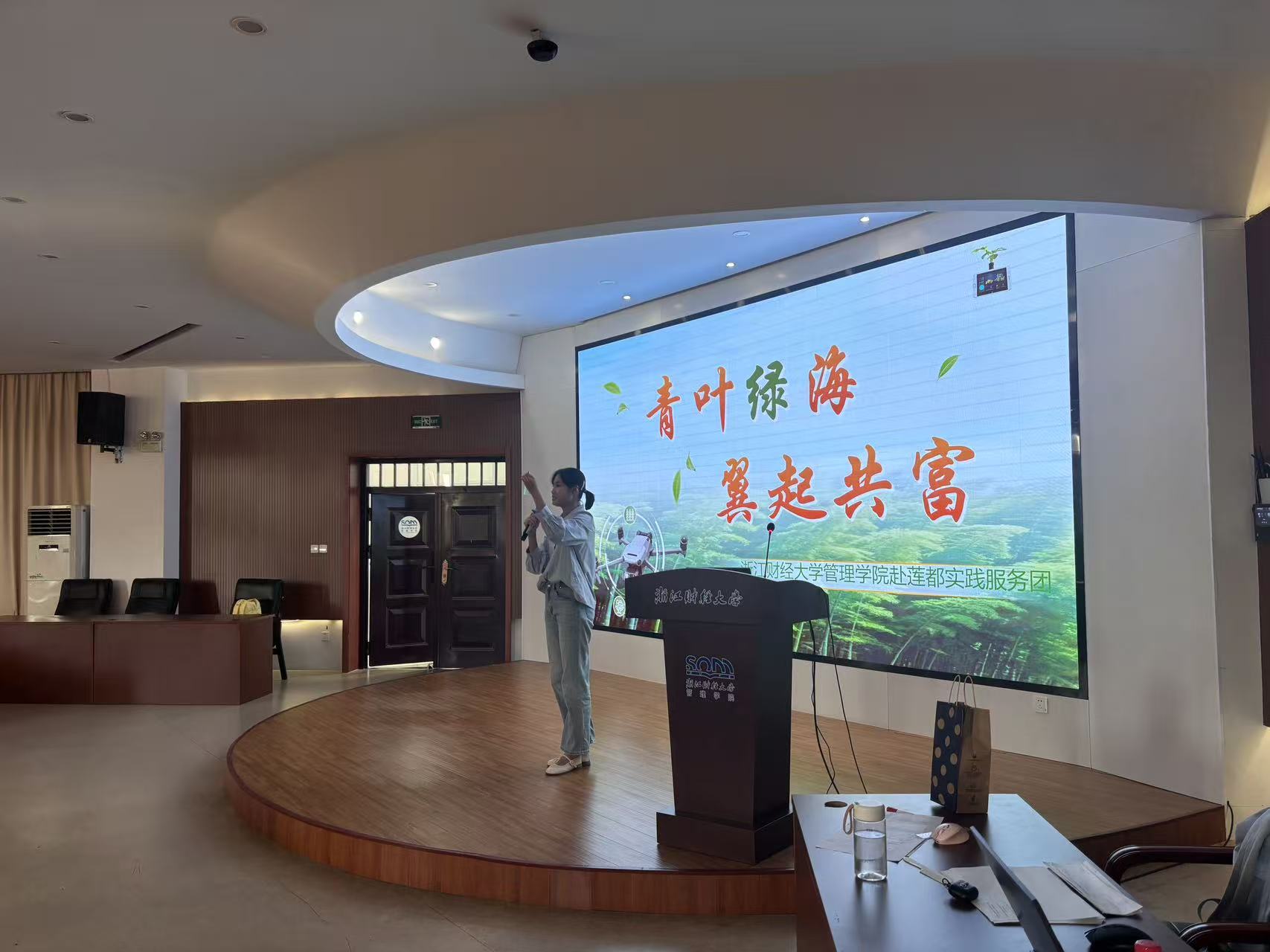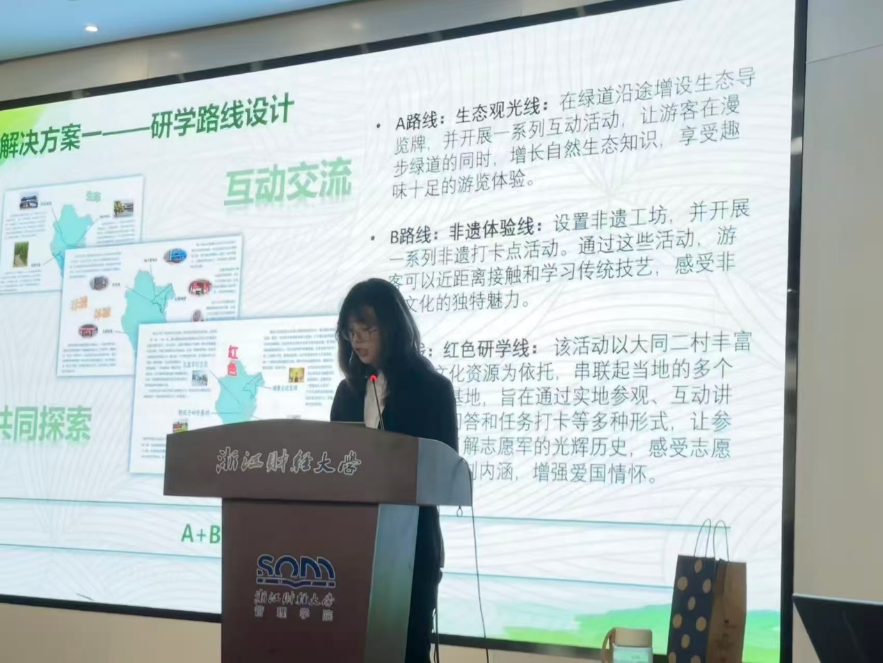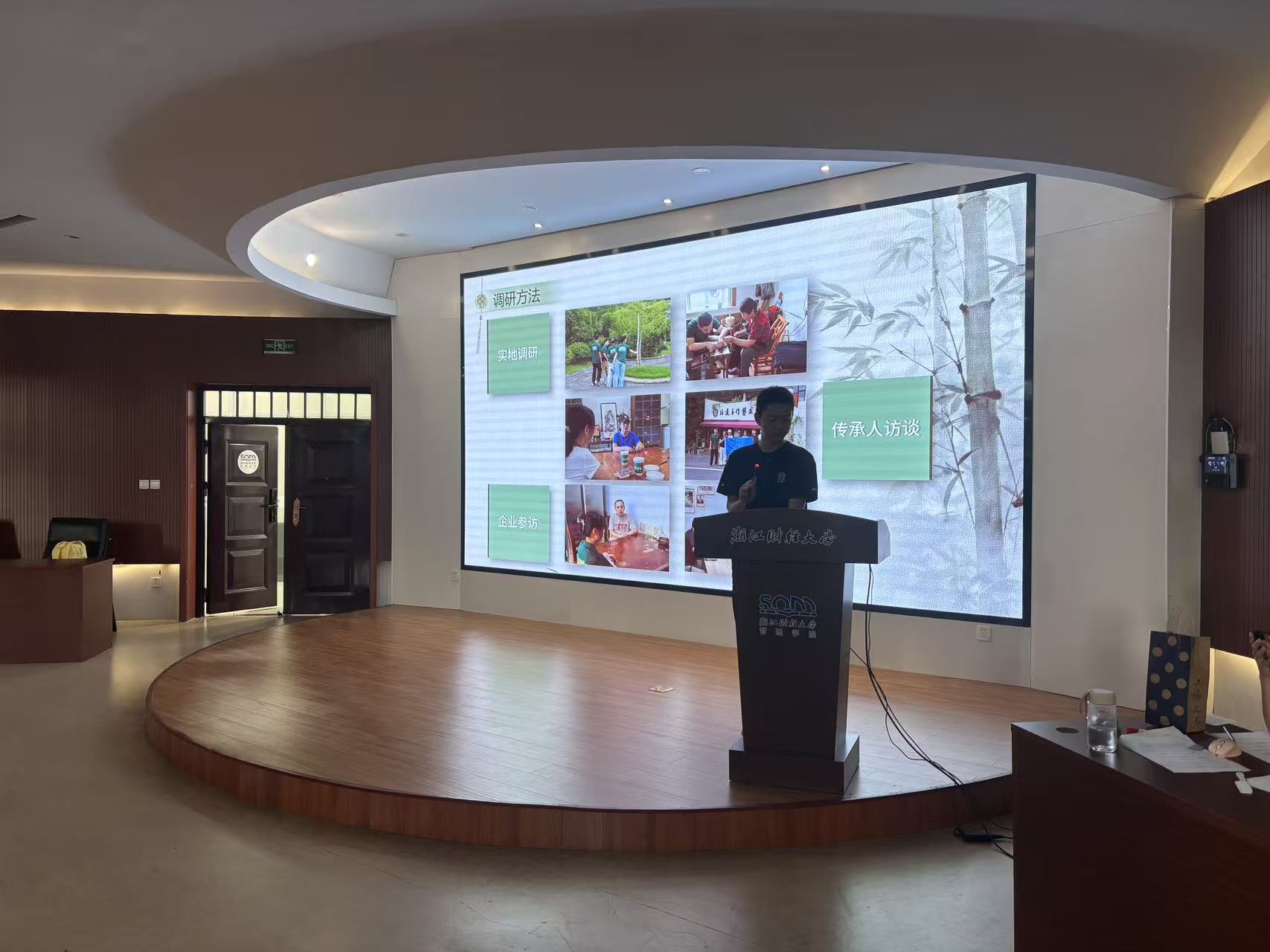 首先是“萧山遗韵,匠艺流芳”实践服务团展开答辩,该团队聚焦萧山区楼塔镇大同二村,深入调研后精准剖析当地发展痛点,并据此制定了一系列具有针对性的特色解决方案;紧接着,赴衢州“江山·西砚非遗活态传承”实践服务团奔赴衢州,深入调研西砚非遗项目,针对其保护传承问题,提出多个切实可行的方案;赴安吉“千万筑梦,绿动安吉”实践服务团经过多年的访问与考察,实行“青耕高庄行”CROP-I驱动模式,整合三大资源,围绕五个维度,助力乡村未来发展;“赴莲都“青叶绿海,翼起共富”实践服务团就竹林产业展开介绍,借助民盟平台累计卖出竹醋液6万瓶,切实带动乡村经济发展;随后,赴海北“智链青牧,牦力青为”实践服务团紧紧围绕“牦牛品牌打造”的目标,开展直播卖牛、拍短视频、多平台输出内容,切实助力牦牛品牌发展;赴杭州嘉兴“檐下闻众声,盏中映世情”实践服务团奔赴杭州、嘉兴多地茶馆,深入了解其经营困境,提出多种优化建议;赴新疆“钱潮西望·天山南北——浙财新疆籍校友访谈录”实践服务团在暑期接连走访了三位新疆籍校友,以校友为榜样,践行“进德修业,与时偕行”的校训精神;赴湖州“织竹常乐,绿富共赢”实践服务团于湖州采访竹木工艺厂厂长并记录非遗传承人的故事,充分发挥专业优势,为当地精心策划营销策略;此外,赴新疆“团结花开边疆暖,共助民族同心梦”实践服务团进入三所学校为孩子们授课,致力于在孩子心中播下团结奋进的种子;“赴婺源“婺源青韵,两山探行”实践服务团则在答辩中强调以艺术赋能乡建,让古韵焕发新生;赴温州“AI赋能,非遗焕新之旅”实践服务团讲述了“廊桥之乡”的传承使命,运用AI技术唤醒非遗的活力与灵魂;赴平阳“青寻乡野,润泽乡韵”实践服务团归纳青年融入乡村的动力机制和现实需求,打造具有昆阳辨识度的青年入乡范示;最后,赴杭州“旗韵织香”实践服务团着重调查了旗袍的故事,在传统与现代的融合中找到价值锚点,努力让通勤旗袍实现从“小众服饰”到“大众日常穿搭”的跨越。