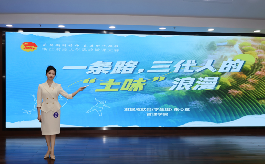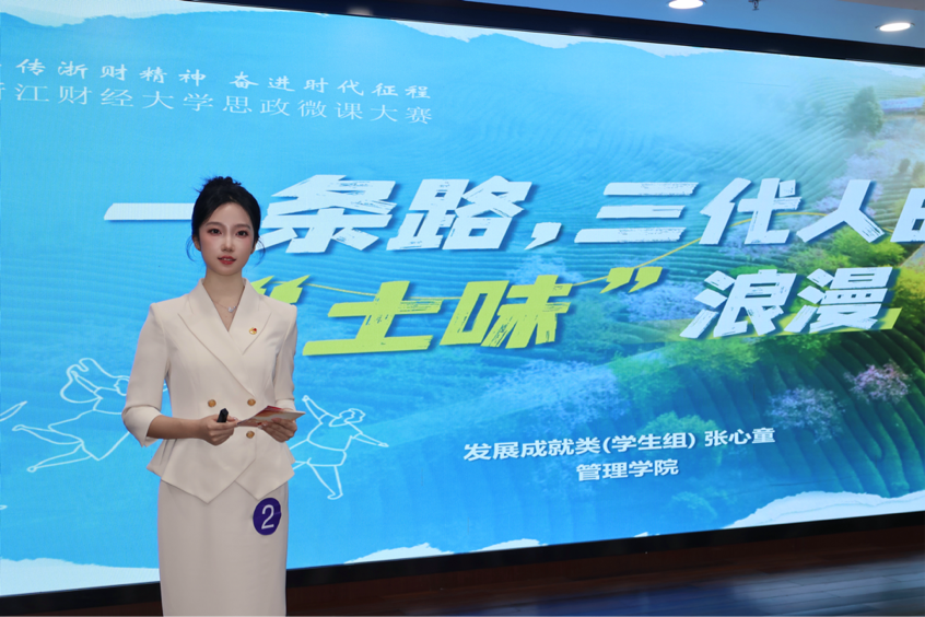 4月14日,2026年度浙江财经大学思政微课大赛在学术四报顺利落下帷幕,我院学子张心童同学取得学生组特等奖的优异成绩,并代表学校参与省赛。