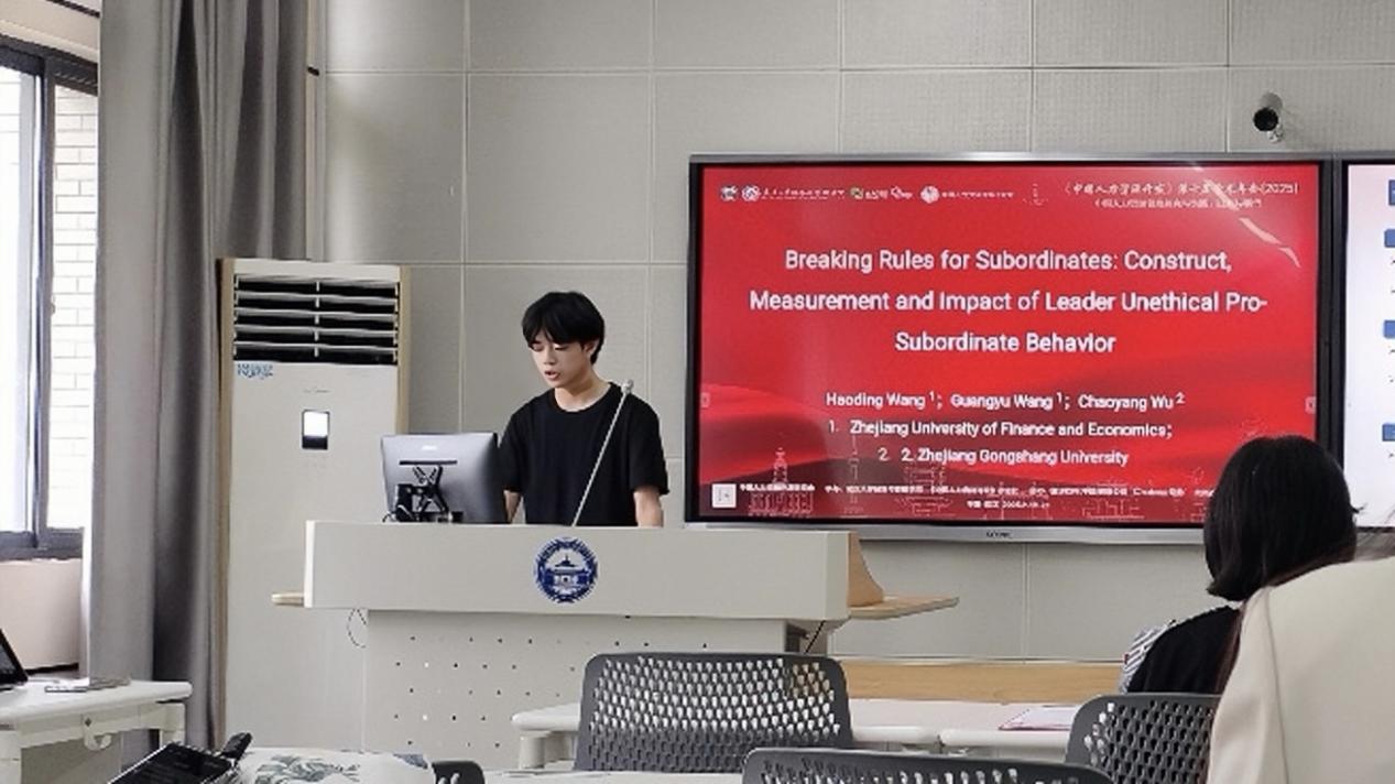 近日,2025年中国人力资源开发学术年会在湖北省武汉市隆重举行。本次年会由中国人力资源开发研究会主办,武汉大学经济与管理学院与《中国人力资源开发》杂志社联合承办,以“中国人力资源管理研究与实践:回顾与展望”为主题,汇聚了全国各地人力资源领域的学者和实践者。我院2024级研究生汪光宇与导师董进才教授、王浩丁老师合作的论文《Breaking Rules for Subordinates: Construct, Measurement, and Impact of Leader Unethical Pro-Subordinate Behavior》受邀在年会上进行了论文汇报。