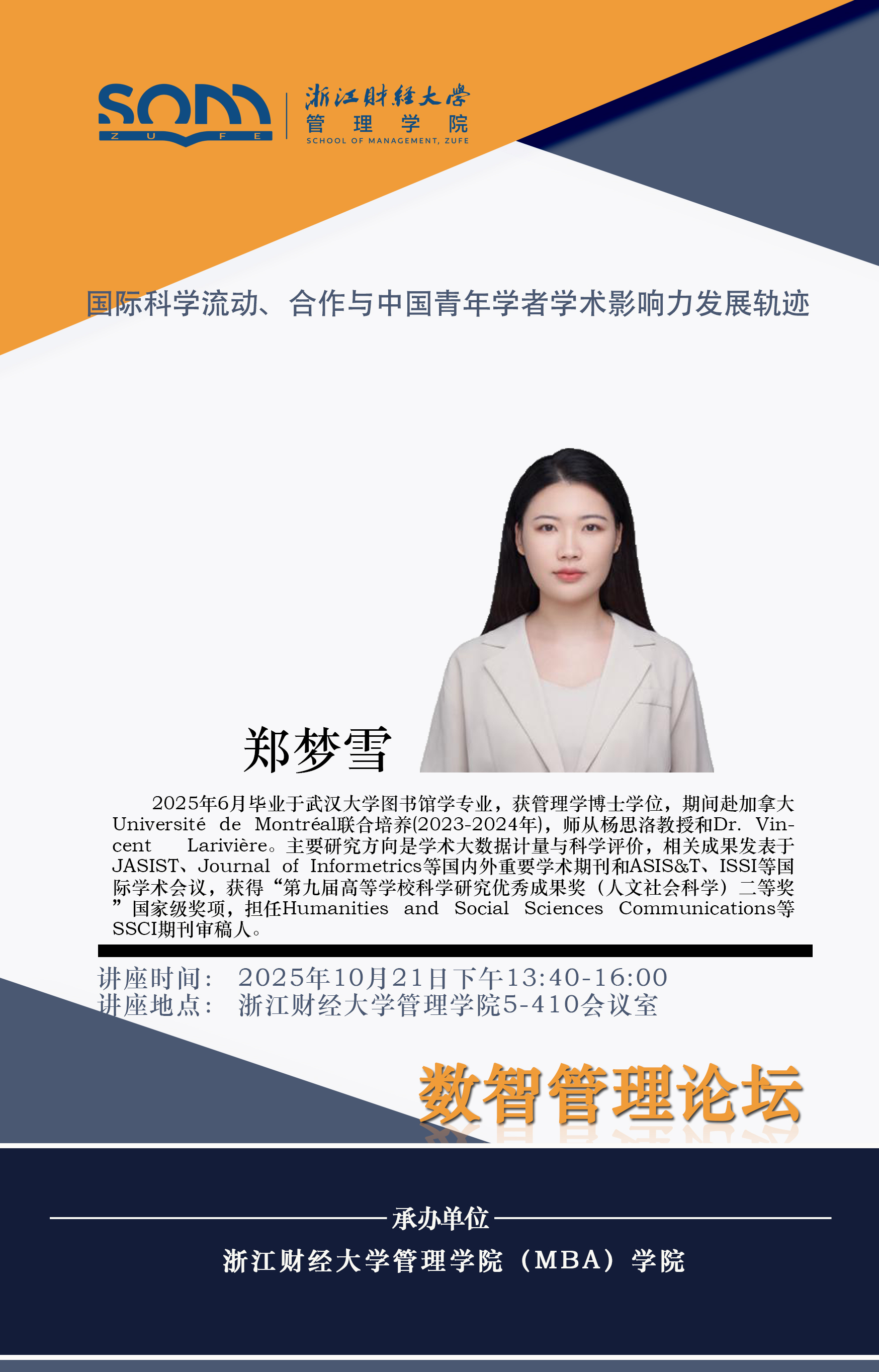 管理学院新财经战略系列学术活动2025年第50期【学术报告】郑梦雪:国际科学流动、合作与中国青年学者学术影响力发展轨迹