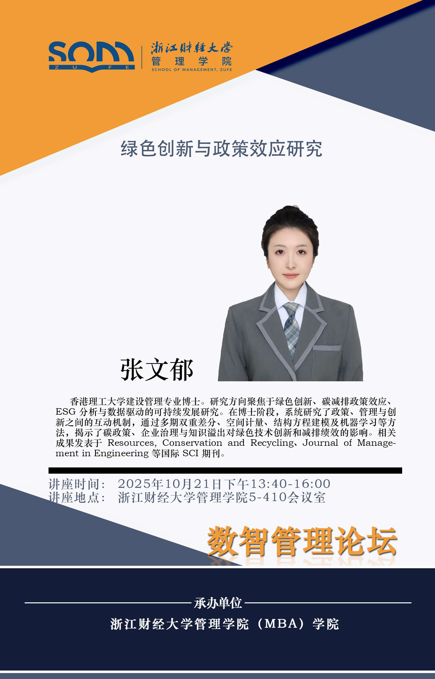 管理学院新财经战略系列学术活动2025年第51期【学术报告】张文郁:绿色创新与政策效应研究