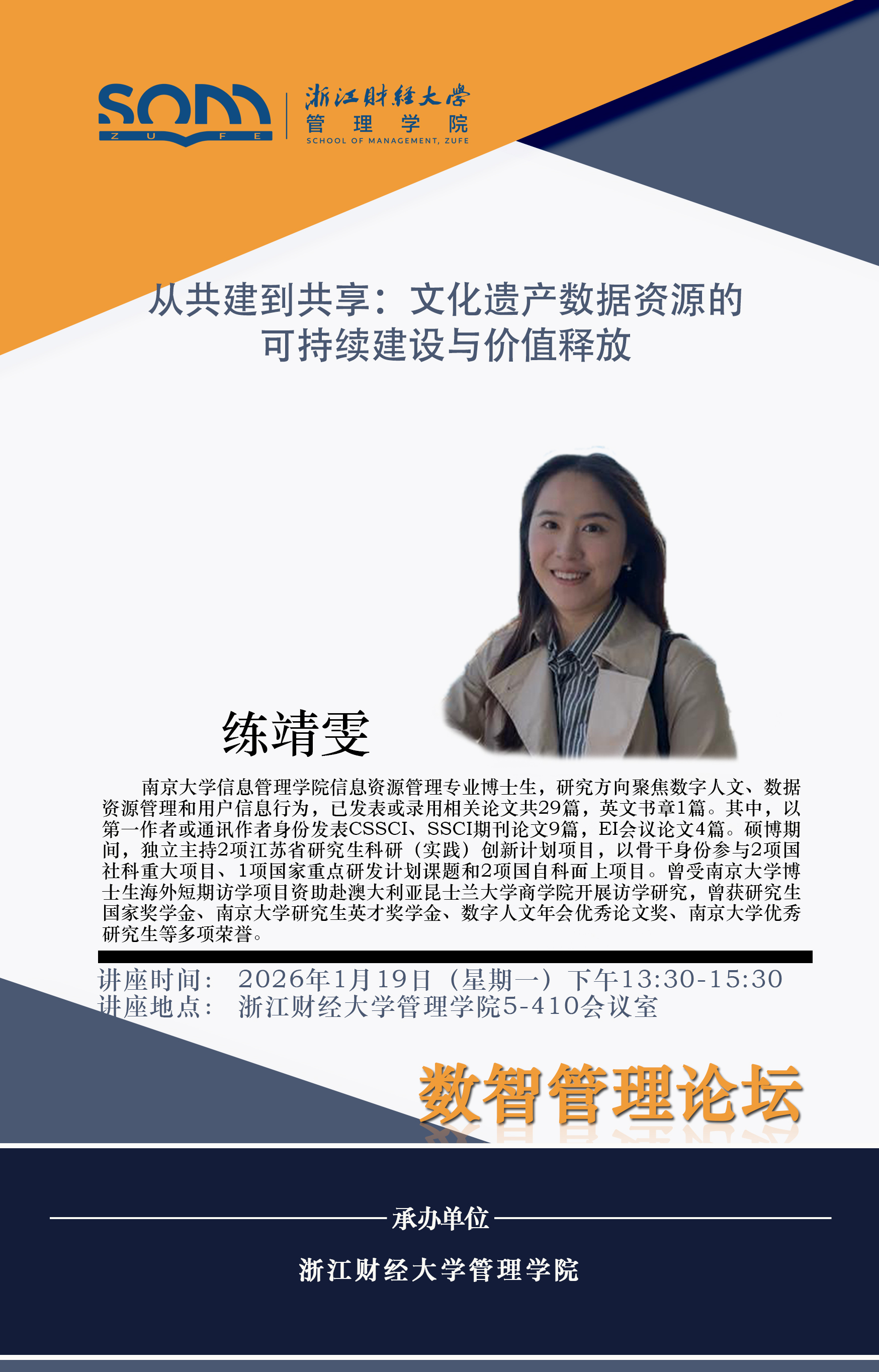 管理学院新财经战略系列学术活动2026年第3期【学术报告】练靖雯:从共建到共享:文化遗产数据资源的可持续建设与价值释放