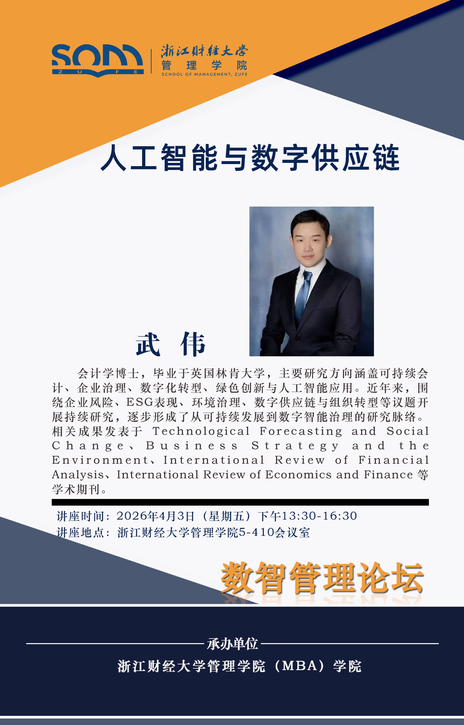 管理学院新财经战略系列学术活动2026年第13期【学术报告】武伟:人工智能与数字供应链