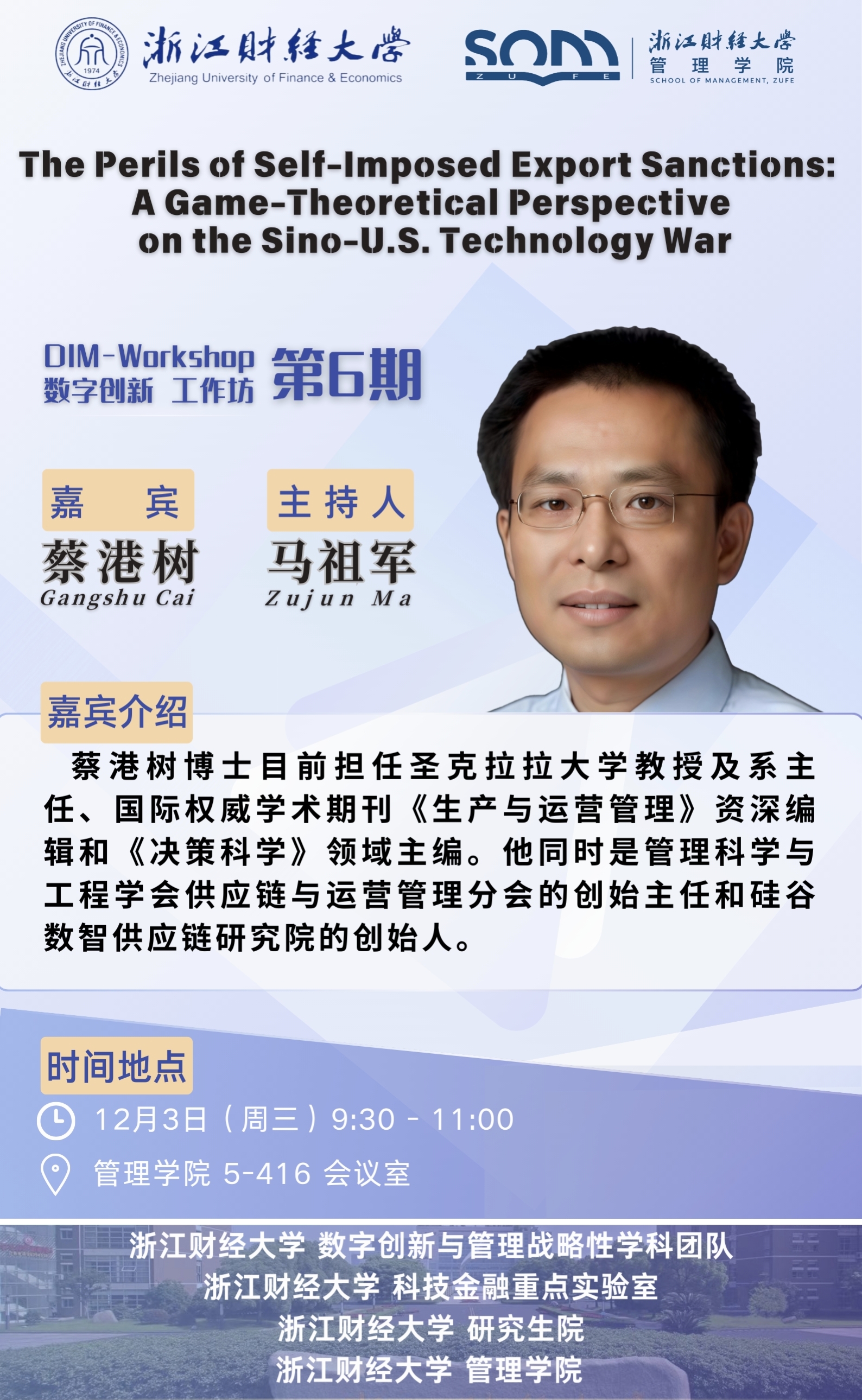 管理学院新财经战略系列学术活动2025年第61期【数字创新工作坊】 蔡港树 The Perils of Self-Imposed Export Sanctions: A Game-Theoretical Perspective on the Sino-U.S. Technology War